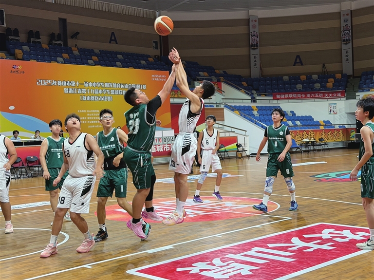 2025年舟山市第十一届中小学生阳光体育运动会篮球比赛暨浙江省第十九届中学生篮球联赛(舟山赛区市级赛)中学组赛事,于10月16日至19日在普陀举行。全市23支代表队参赛。经过激烈角逐,定海七中获初中组冠军;舟山职业技术学校获高中组冠军。