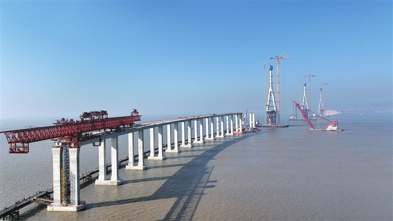 12月18日上午,随着最后一榀节段梁在架桥机精准牵引下平稳对位,六横公路大桥二期工程青龙门大桥东引桥436榀节段梁架设任务全部完成,标志着该桥主体结构施工取得突破性进展,为后续桥面系施工及项目全线贯通按下“加速键”。
