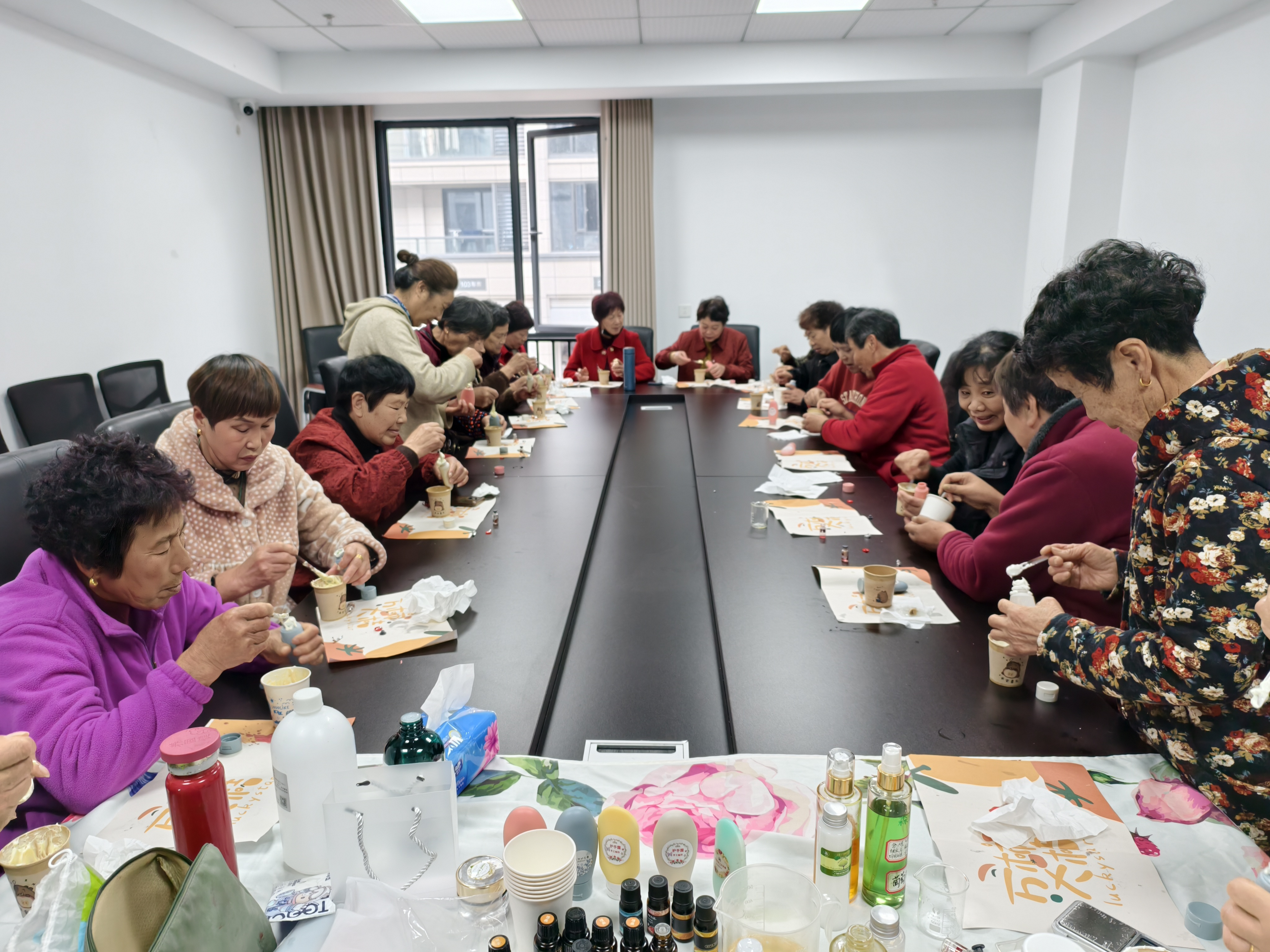 活动现场,工作人员提前准备好制作护手霜的各类原料与工具,包括乳化剂、植物精油、保湿剂、量杯、搅拌棒等。专业老师首先为村民详细讲解了护手霜的制作原理、原料配比以及操作步骤,从原料的计量、混合搅拌,到乳化、灌装的每一个环节都进行了细致演示。村民们听得十分认真,不时提出疑问,老师也耐心地逐一解答。实操环节中,大家围坐在长桌旁,按照老师的指导一步步动手操作,现场氛围热闹又温馨。有的村民手法熟练,很快就完成了基础制作;有的村民则在老师和同伴的帮助下慢慢摸索,过程中相互交流技巧、分享心得。活动最后,每位参与村民都成功制作出属于自己的护手霜,拿着亲手制作的成品,大家脸上都洋溢着满满的成就感,纷纷希望村里今后能多开展这类有趣又有意义的活动。