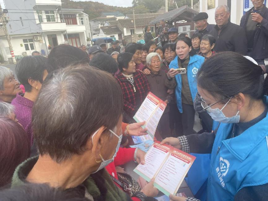 12月10日,普陀区桃花镇塔湾文化礼堂开展平安三率宣传活动。