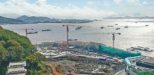 近日,笔者在半升洞客运站施工现场看到,工人们正加班加点,有序推进工程建设。据悉,该工程项目计划在今年底实现建筑主体封顶,2024年5月份完工。项目建成后,将成为沈家门渔港小镇的核心功能区、“山—海—城”一体的时尚休闲区,更是“东方渔都”的海上门户,与普陀山、朱家尖共同构成新普陀旅游金三角。