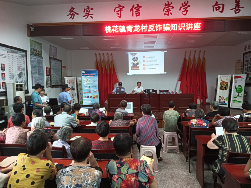 9月15日上午,桃花镇后沙头文化礼堂开展反诈骗知识讲座,桃花派出所民警为村民讲解了最新的AI网络诈骗手段及防护措施,呼吁村民注意保护好自己的个人信息。