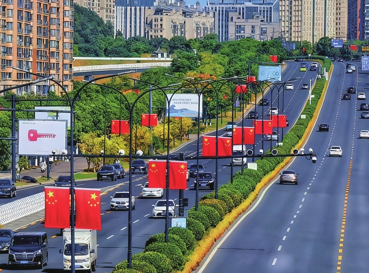 连日来,普陀街头洋溢着浓厚的节日氛围。全区主要路段共697杆灯杆悬挂起鲜艳的五星红旗,与街头新更换的14万盆草花及4处焕新的绿雕花卉共同扮靓城市,为国庆节增绿添彩。