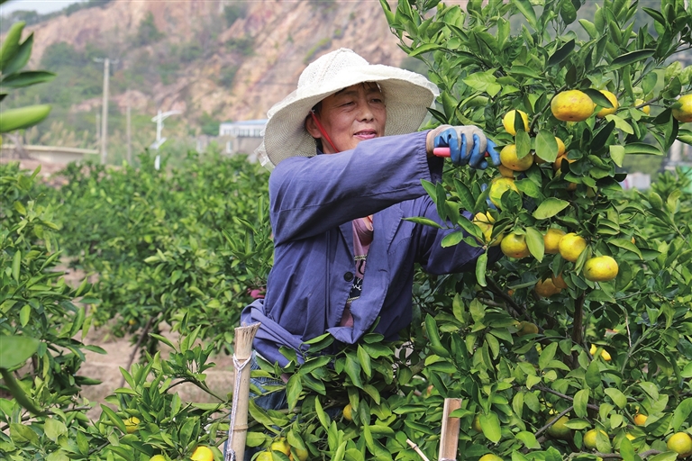 丰收的蜜橘深受市场欢迎。刘信南的妻子笑着说:“前几天刚发走一批到沈家门,今天那边又下单了。宁波等地的订单也接连不断。”